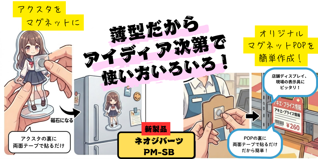 【新発売】アクリルグッズや販促POPを簡単にマグネット仕様に! ネオジパーツ PM-SB